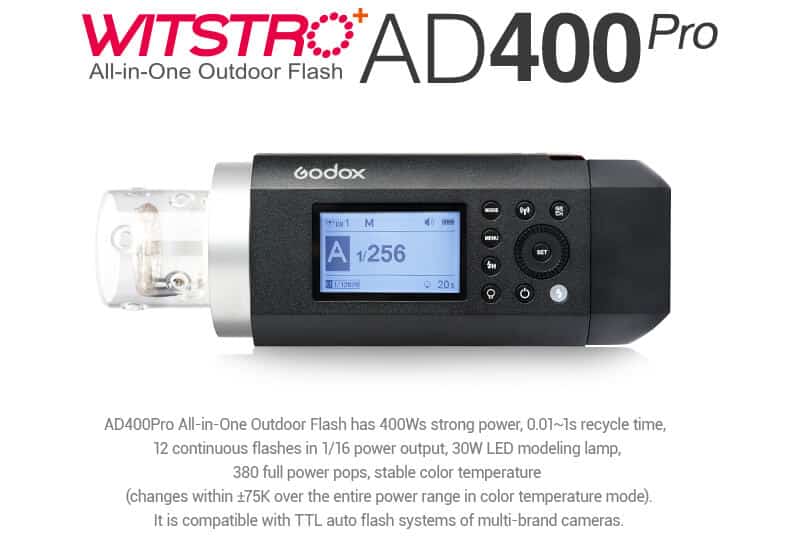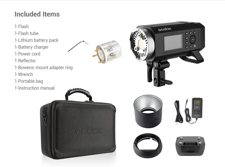 GodoxAD400 er öflugt stúdíóljós sem auðvelt er að ferðast með og nota inni sem úti. Ljósið kemur með rafhlöðu sem nær allt að 390 skotum á fullum styrk.